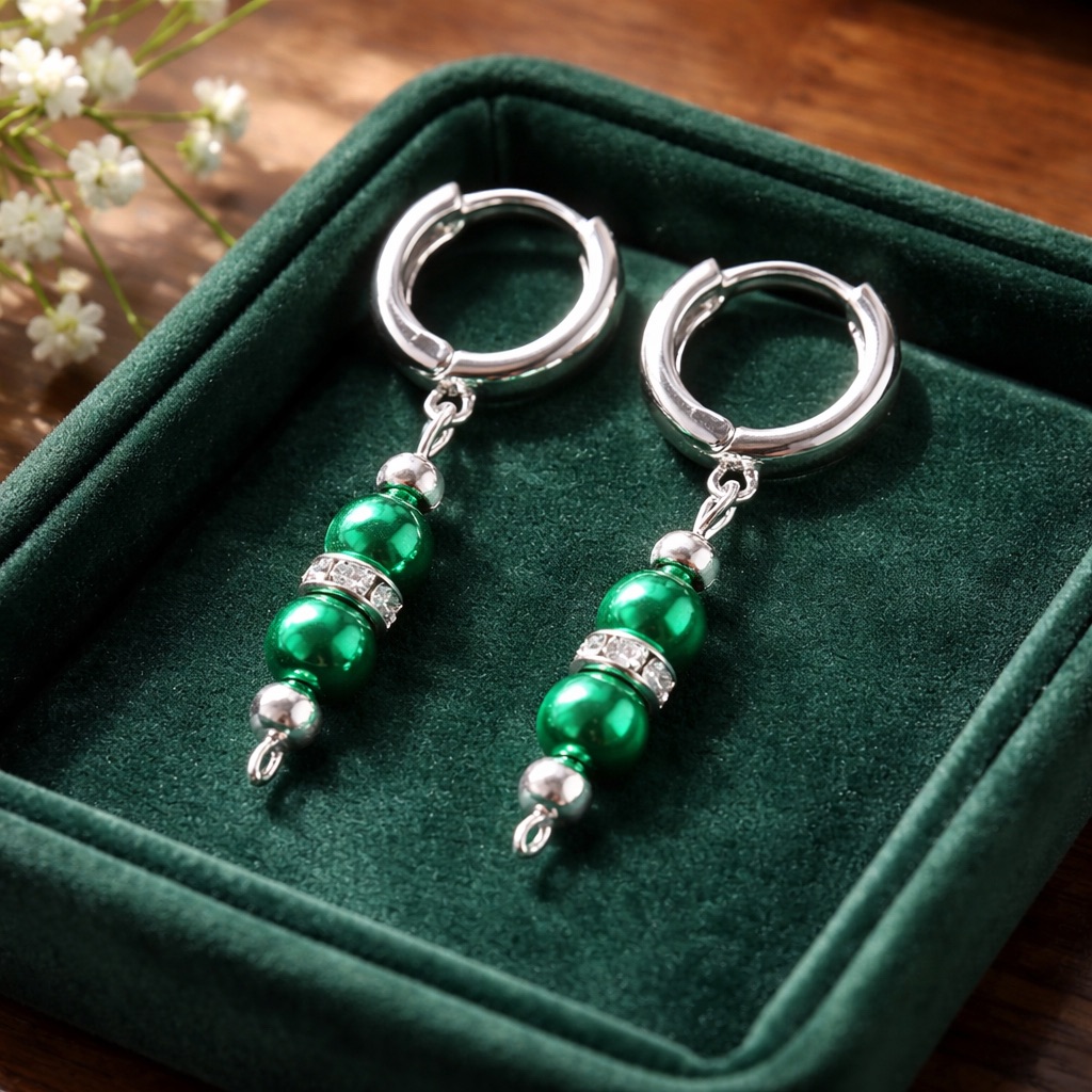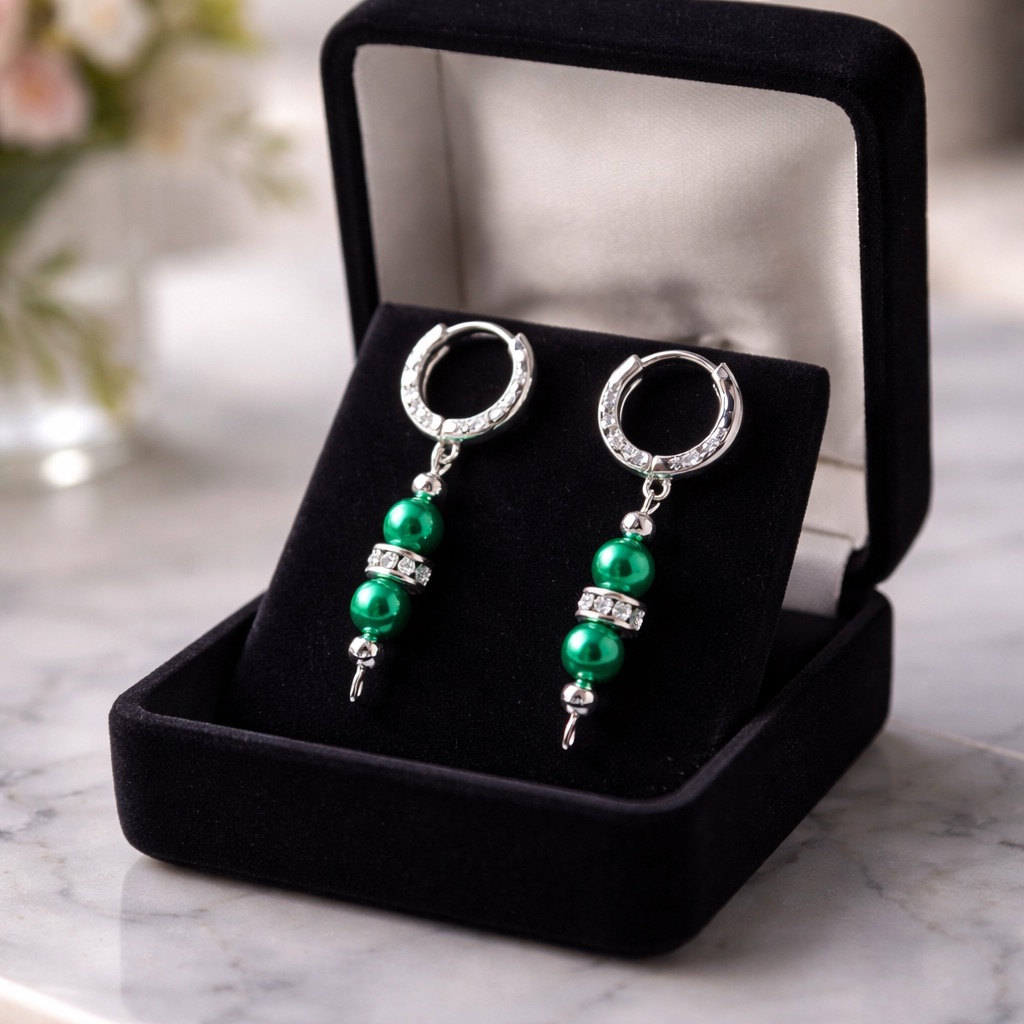 The Finish Line Faith – Emerald Earrings are a symbol of perseverance and unwavering belief. Featuring rich emerald green beads with sparkling accents and sleek silver hoops, this design represents growth, endurance, and the strength to press forward until the finish line is crossed.