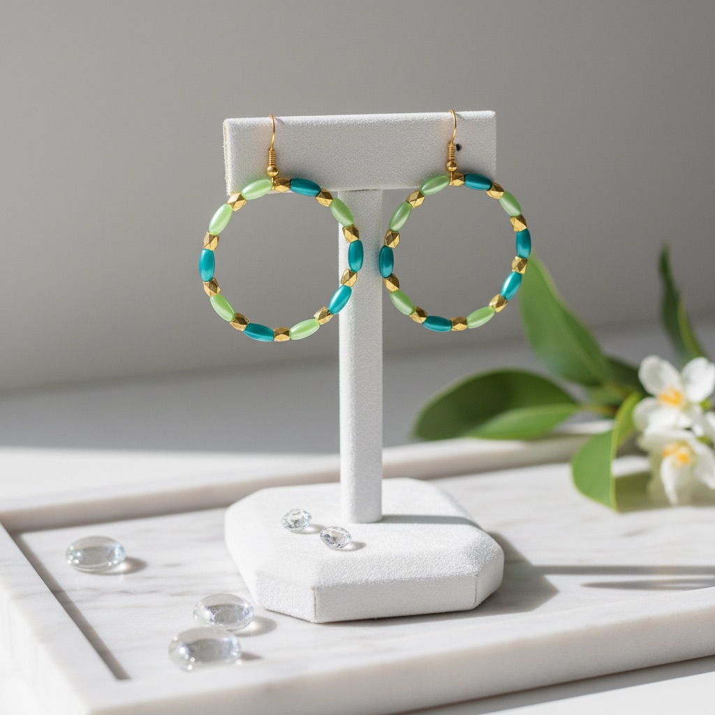 Fresh mint and teal beads paired with golden accents create a vibrant, elegant statement perfect for any season.