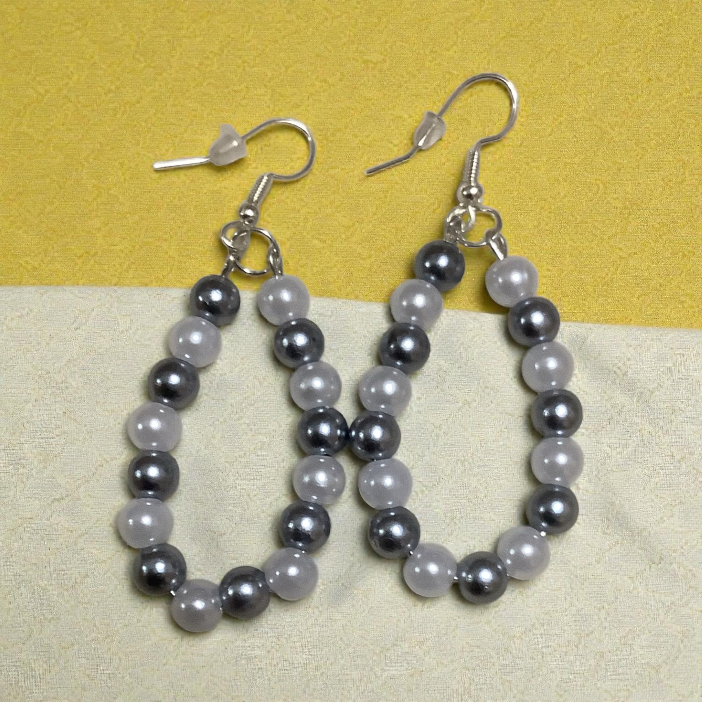 Soft gray and deep silver beads blend beautifully in this chic, modern hoop design — effortless elegance with a cool-toned glow.