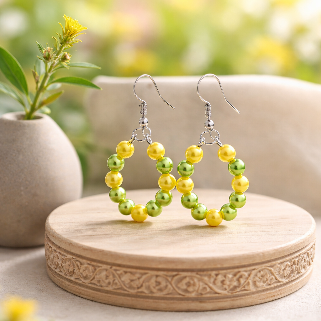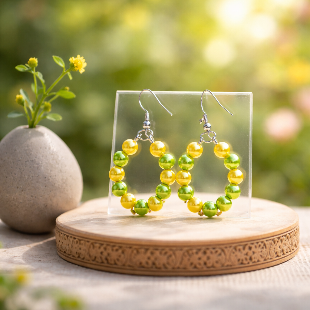 Bright, refreshing, and full of life — the Citrus Glow Hoops bring sunshine energy to your everyday style. Featuring alternating yellow and green luminous beads, these hoops radiate positivity, freshness, and bold confidence. Lightweight yet eye-catching, they’re perfect for spring, summer, or anytime you want to glow a little brighter.