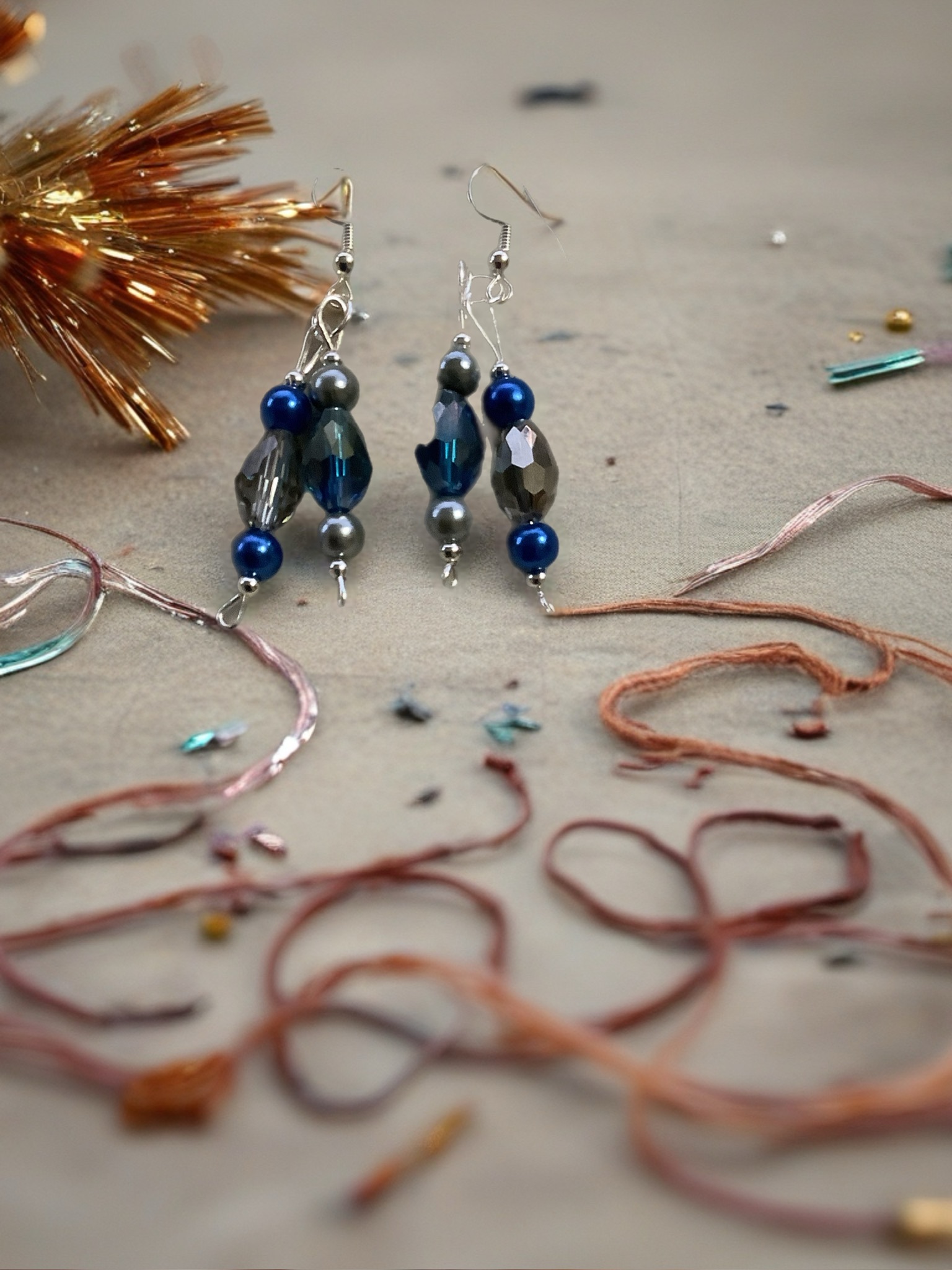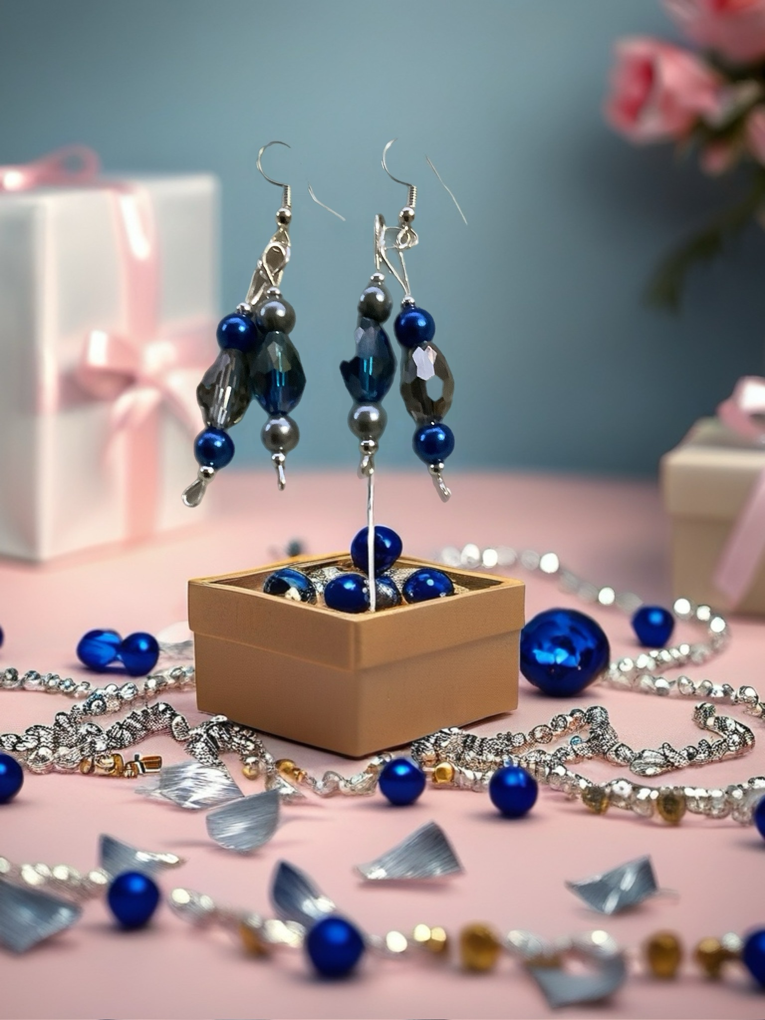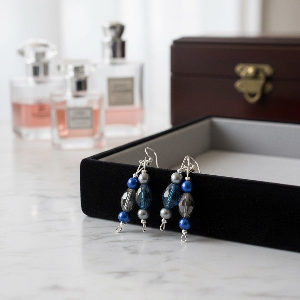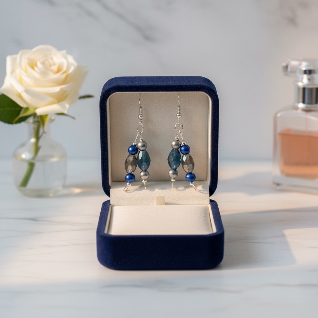 The Midnight Serenity features deep blue and smoky crystal tones paired with elegant silver accents, creating a calm yet striking look. This earring is designed to bring balance, confidence, and timeless beauty to any outfit—day or night.