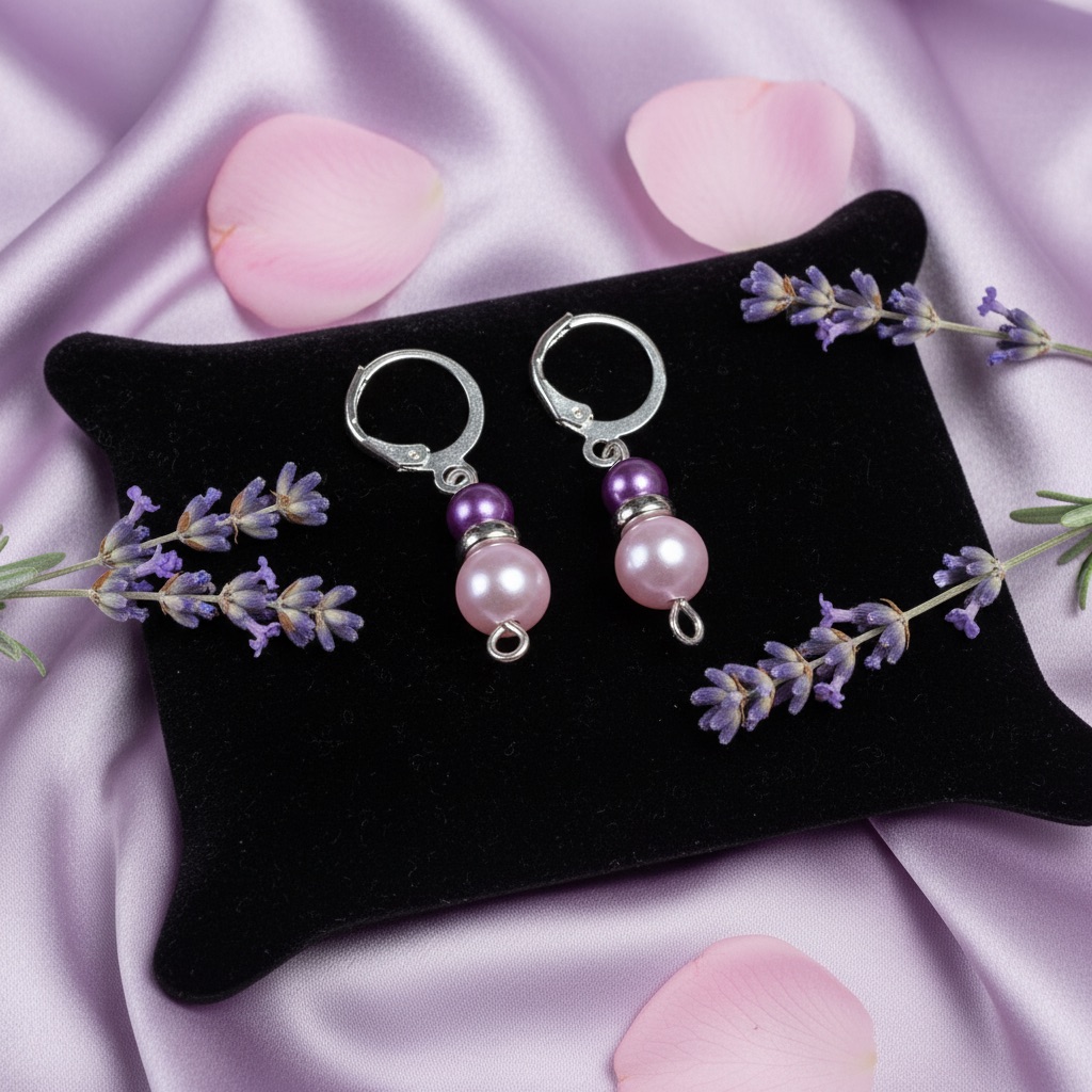 Soft lavender and blush pearls come together in this delicate, romantic design inspired by twilight skies and quiet elegance. Dreamy Dusk captures the beauty of gentle evenings — subtle, graceful, and effortlessly chic. Lightweight with a timeless glow, these earrings add the perfect touch of femininity to any look.