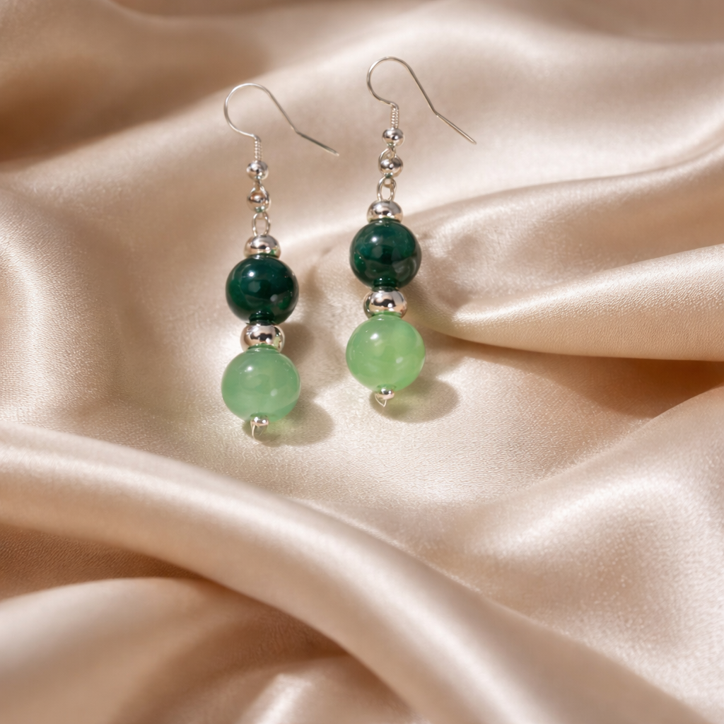 Deep emerald and soft mint beads with silver accents for a fresh, earthy elegance. Simple, bold, and easy to style.